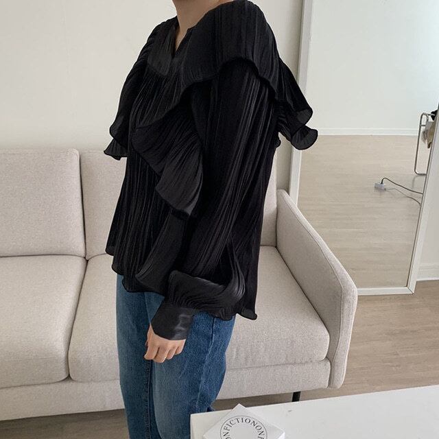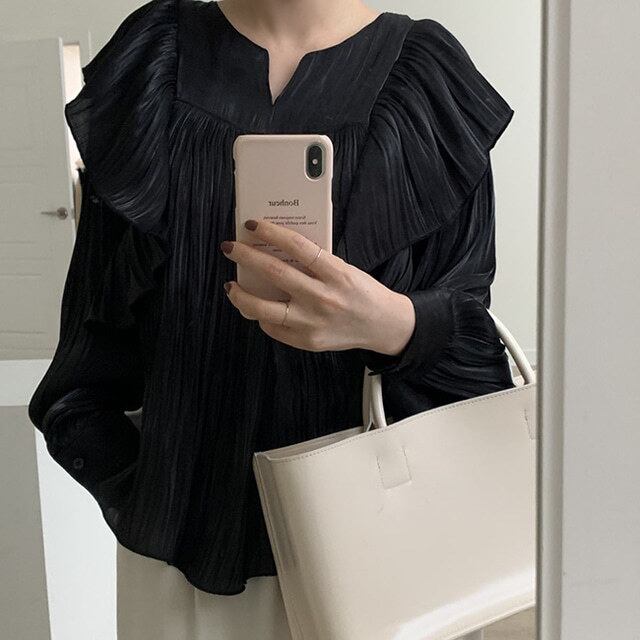 2022春新作 ブラウス フレアシャツ Vネック 長袖 プリーツ レディーストップス OL