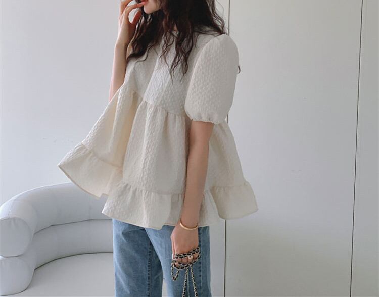 2022春夏新作 フレア ブラウス 半袖 韓国風 レディース Aライン おしゃれ