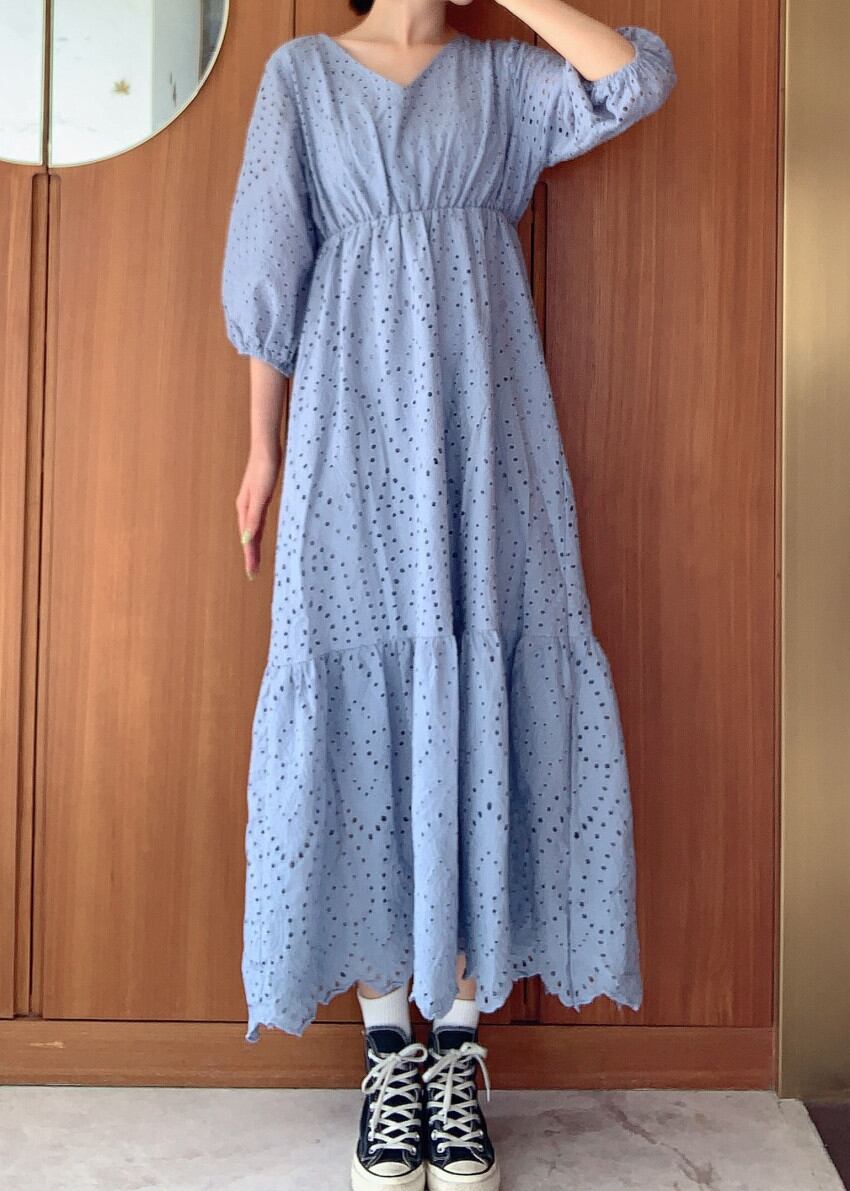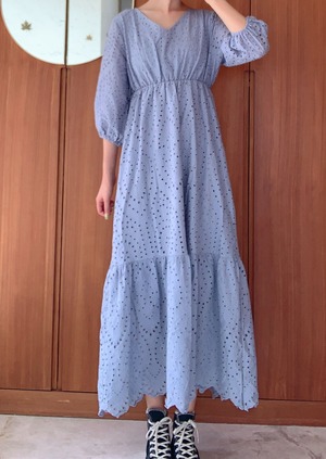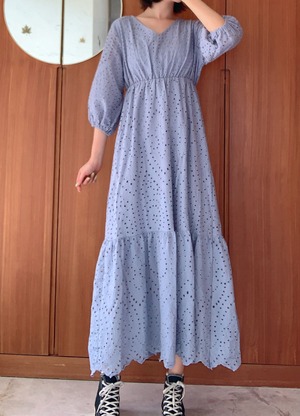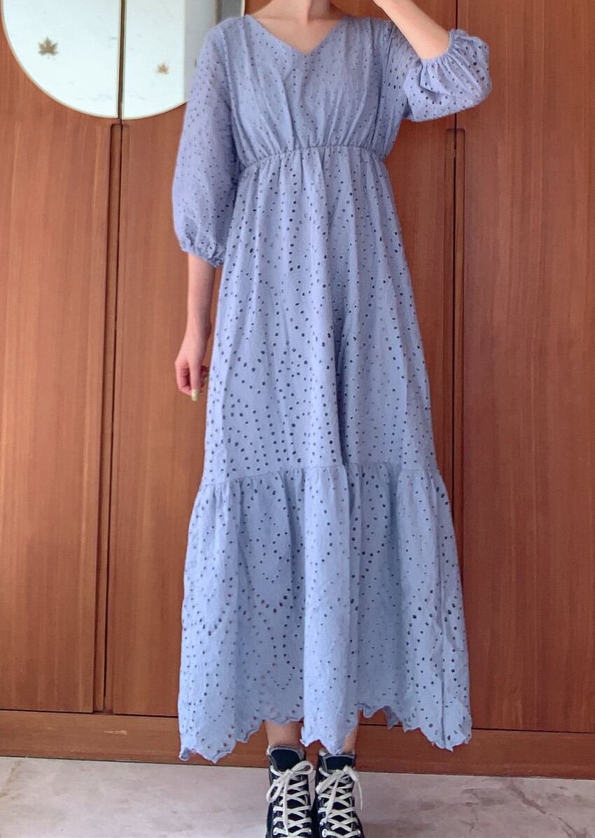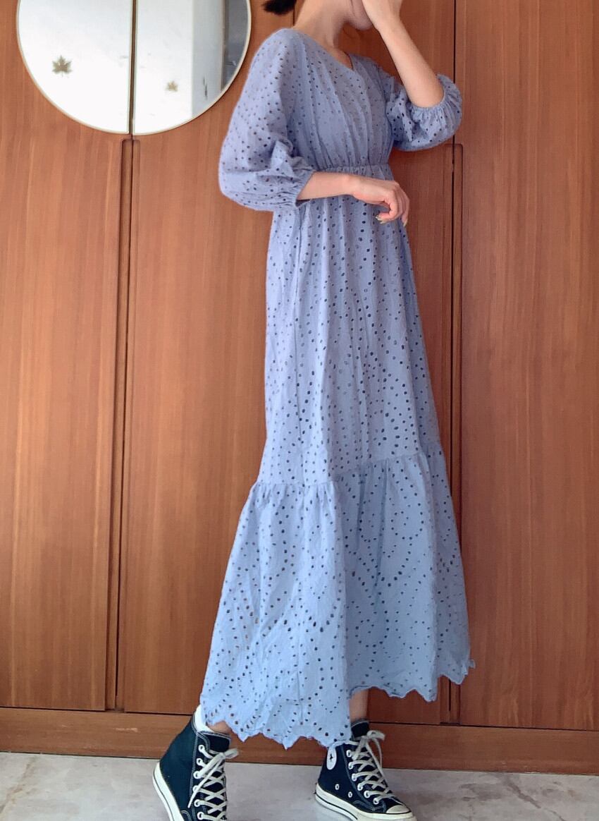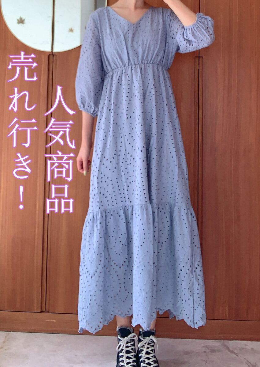 レース 透かし彫り ワンピース Vネックワンピース ロングワンピ 体型カバー 人気新作