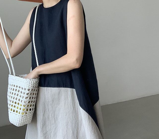 2022春夏新作 ロング丈ワンピース ワンピース 切替 体型カバー ノースリーブ レディース Aライン おしゃれ