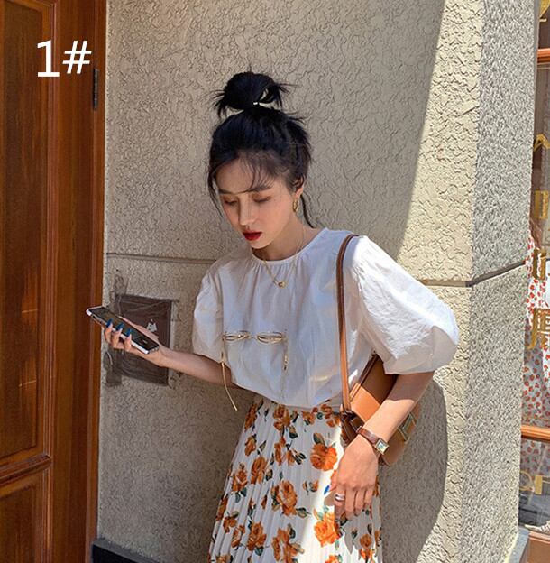 新作 人気ブラウス ラウンド パフスリーブ 可愛い S~2XL オシャレ 韓国ファッション
