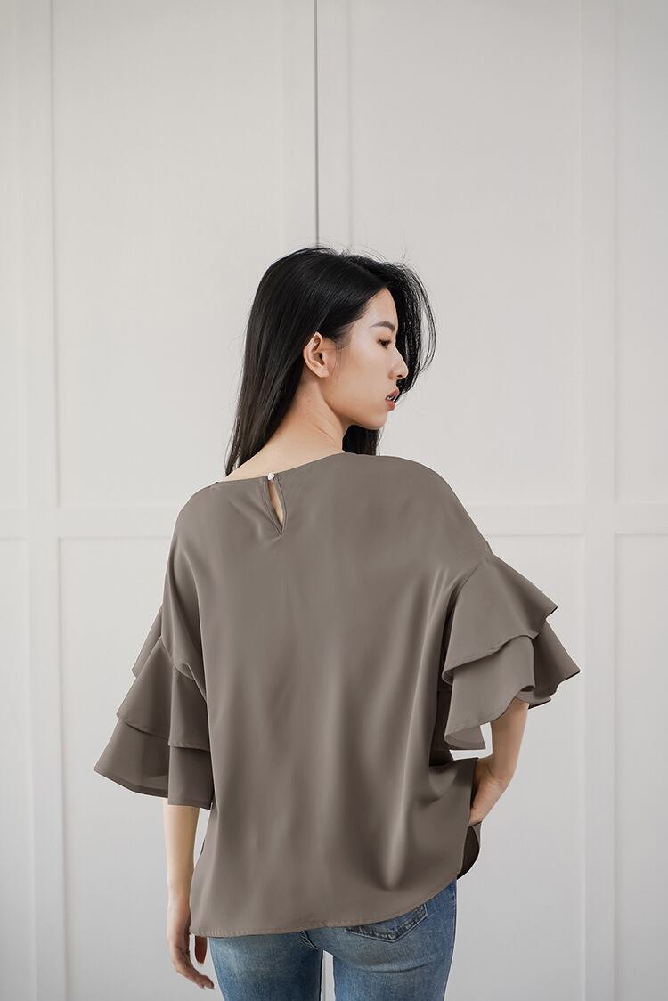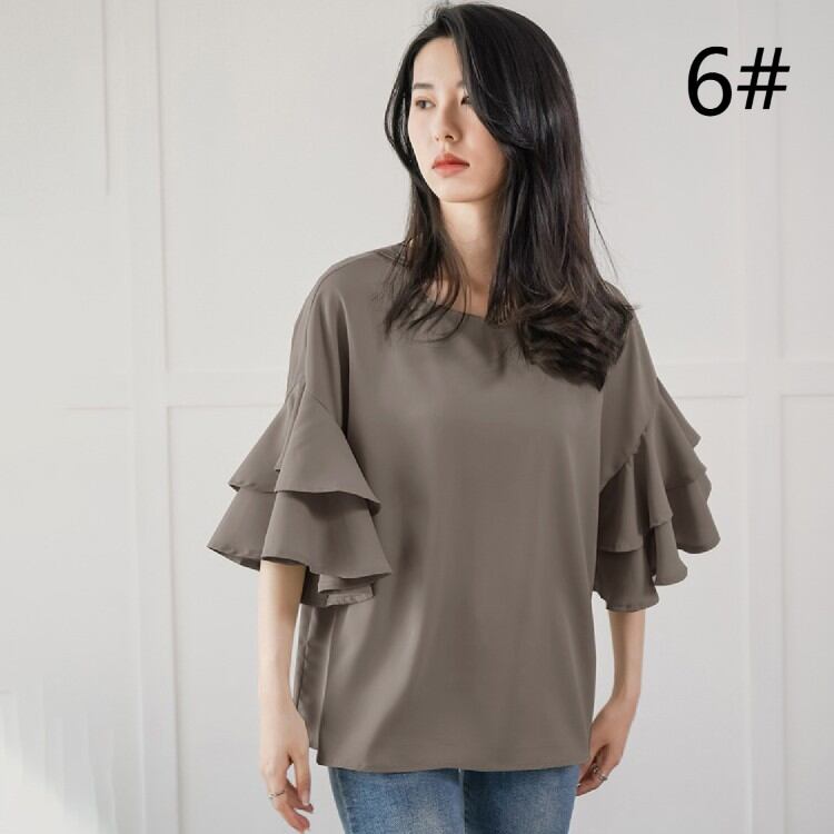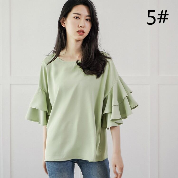 2022春夏新作 人気ブラウス トップス フレア袖 レディース 体型カバー 着回し おしゃれ