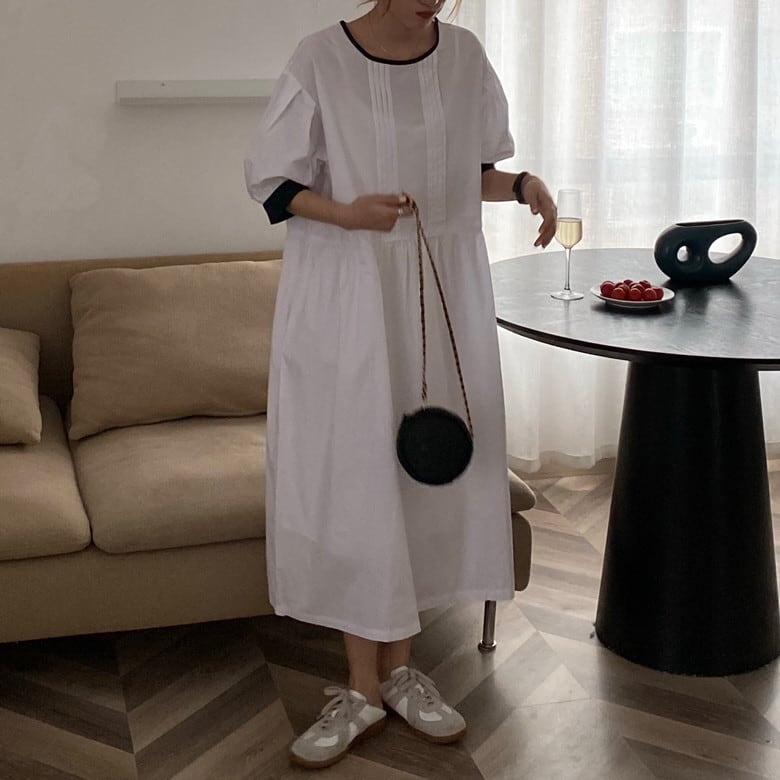 新作 ワンピース ロングワンピース パフスリーブ 韓国風 体型カバー きれいめ