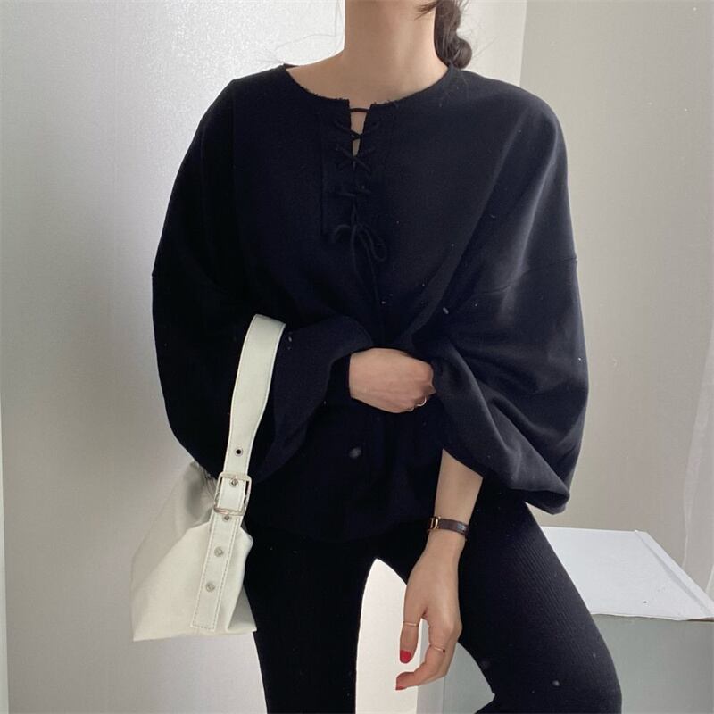 2022新作 トップス プルオーバー パフスリーブ レディース カジュアル リボン付き 春秋