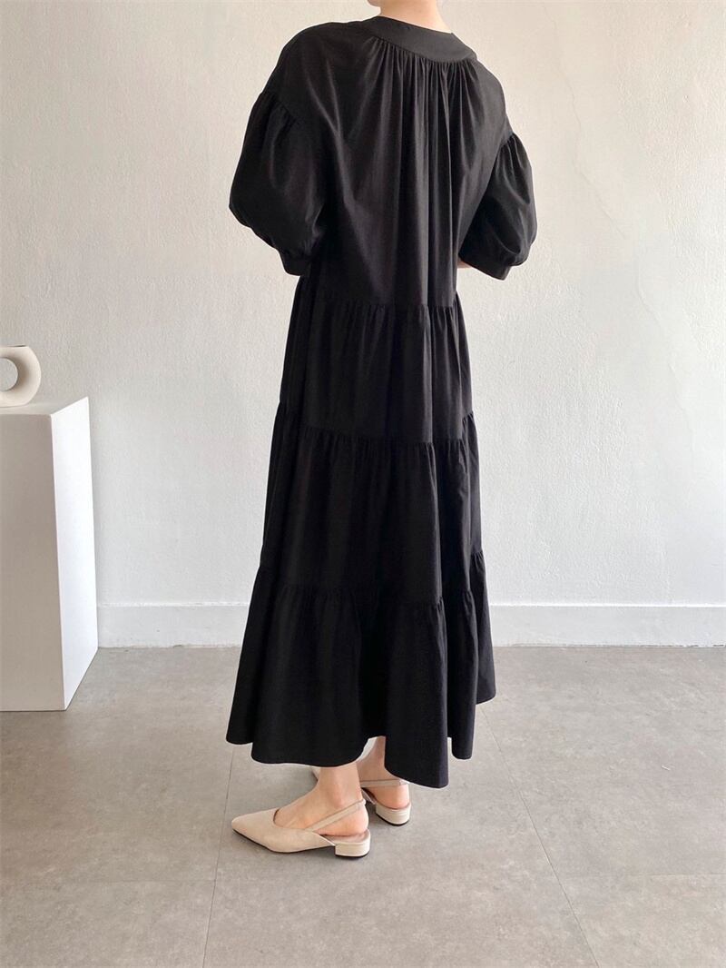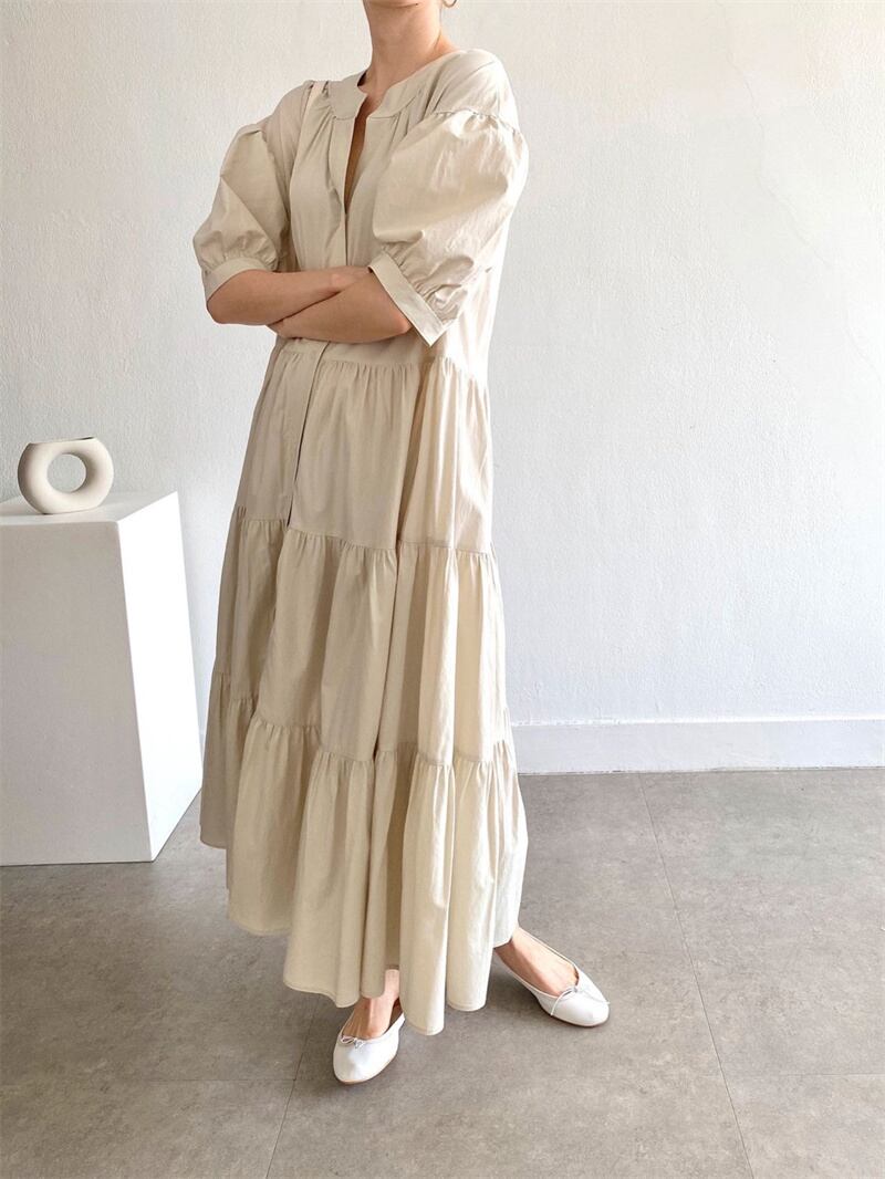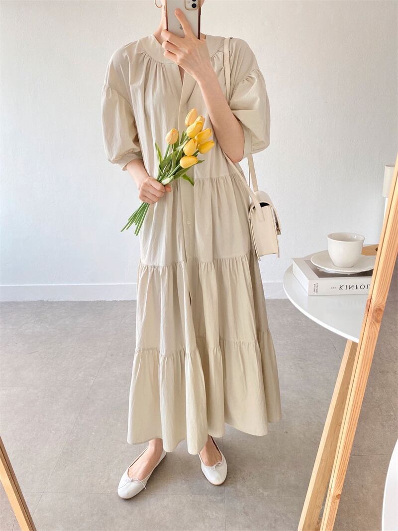 2022春夏新作 フリルワンピース ロング丈ワンピース フレア 韓国風 レディース 体型カバー シンプル
