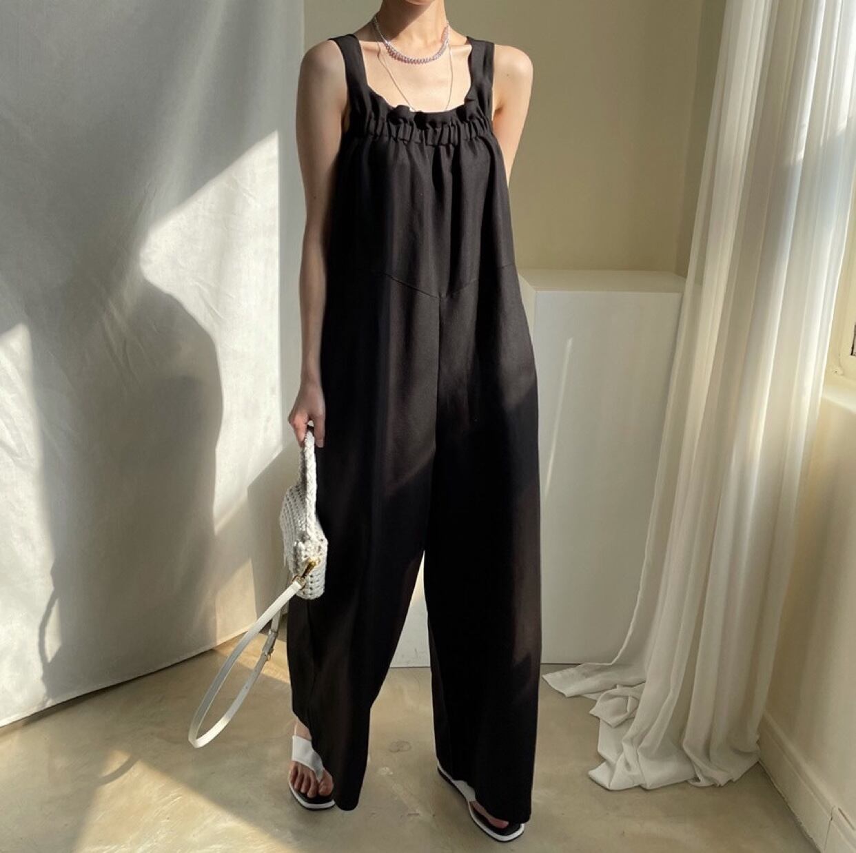大人カジュアルに着るマキシ丈サロペットパンツ。