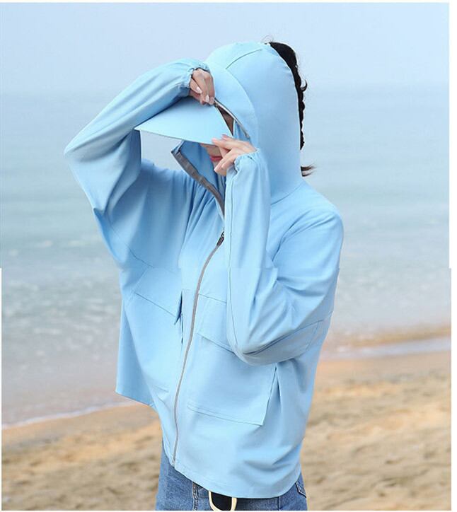 日焼け対策 パーカー フェイスガード ジャケット 広ツバ UV対策 ト紫外線防止 顔と手の甲までカバー!