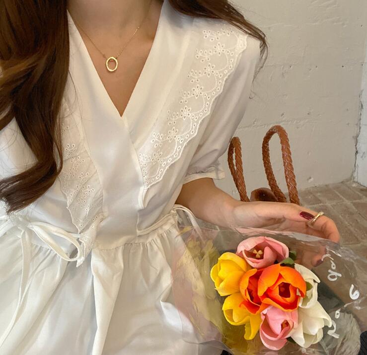 新作 ブラウス フレアシャツ Vネック Aライン 五分袖 レディーストップス オシャレ カジュアル