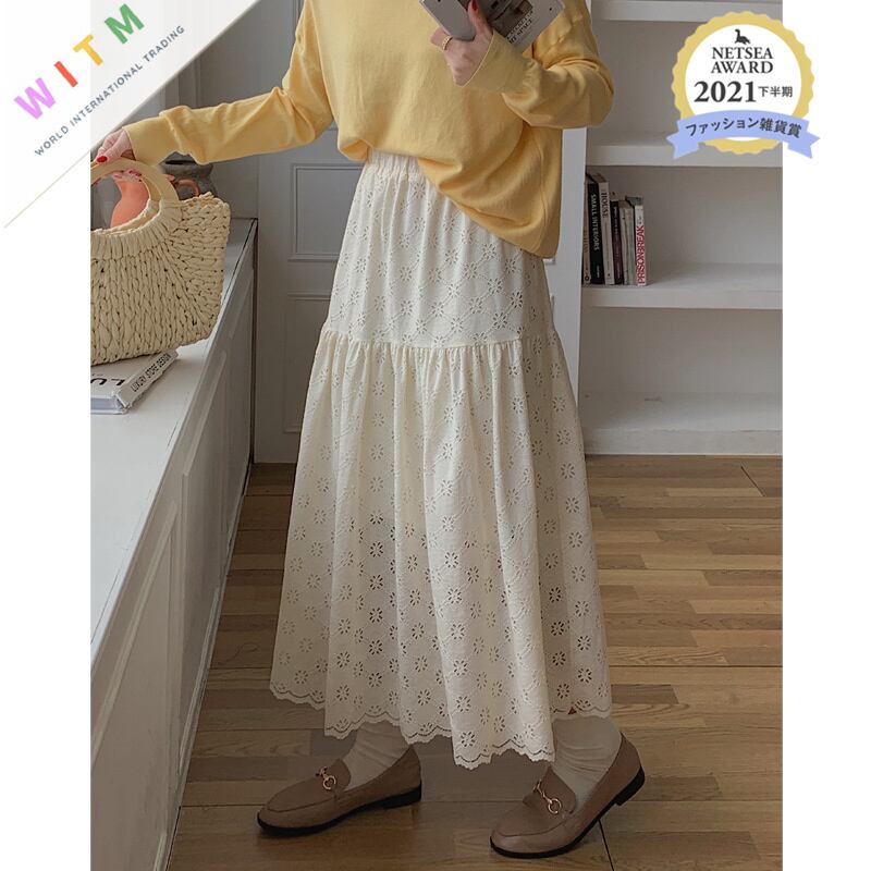 2022春夏新作 レーススカート ロングスカート フレアスカート 透かし彫り レディース Aライン