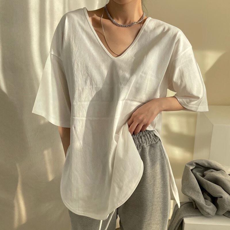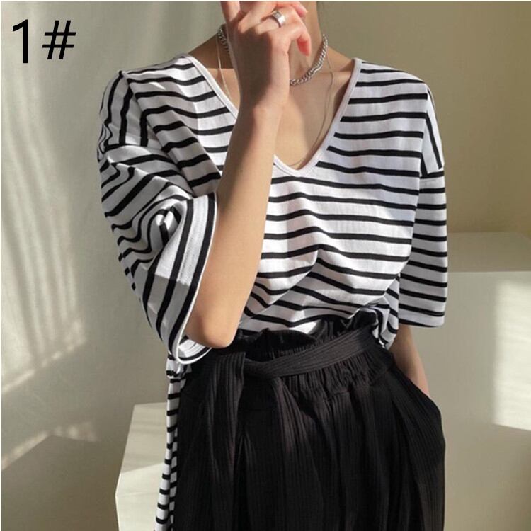 2022春夏新作 Vネック Tシャツ 人気 tシャツ ストライプ柄 半袖 レディース カジュアル シンプル