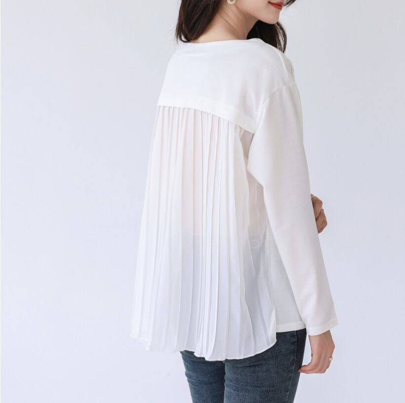 2022春夏新作 バックプリーツ ブラウス シフォン トップス 長袖 切替 レディース 着回し 人気
