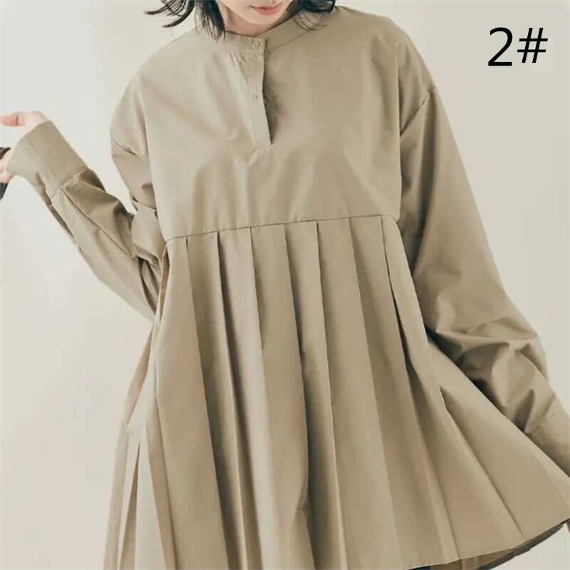 2022春新作 ブラウス 人気シャツ プリーツ ラウンドネック 体型カバー レディーストップス
