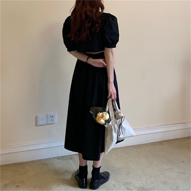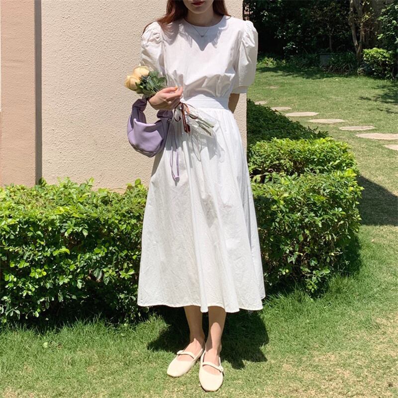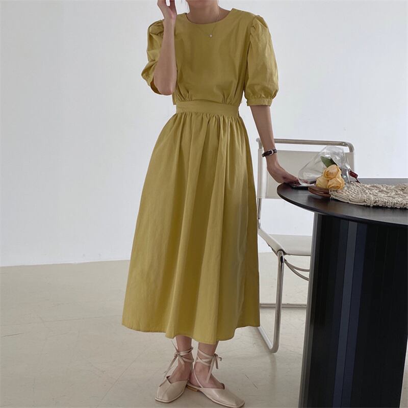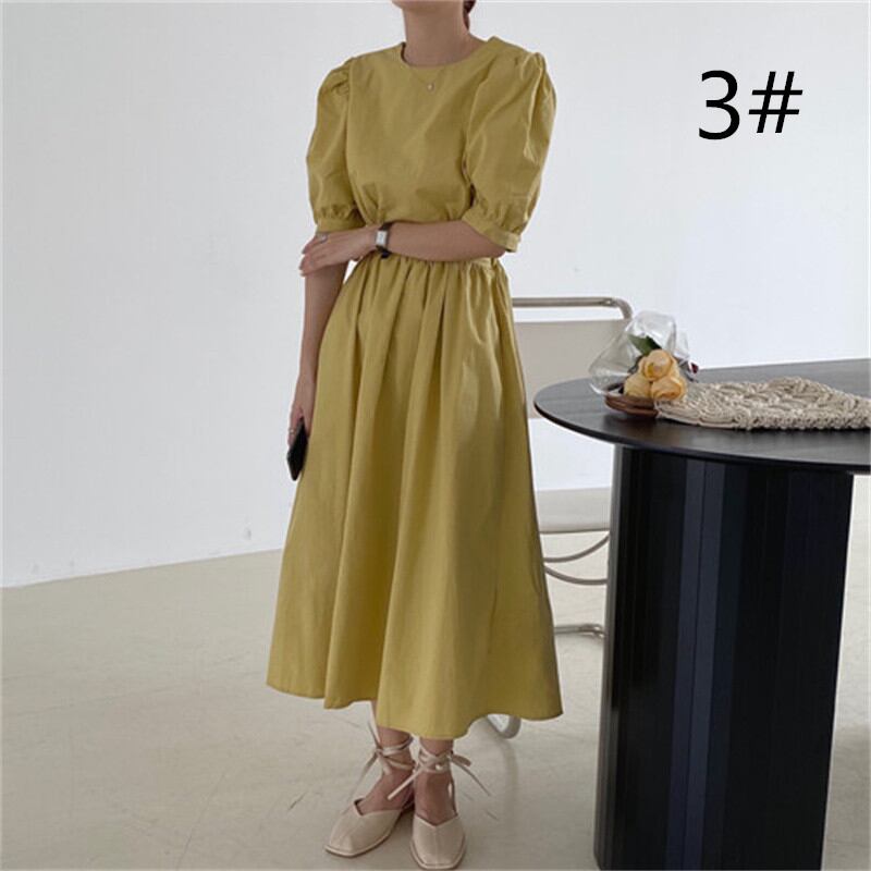 2022春夏新作 ワンピース ロング丈ワンピース パフスリーブ レディース 韓国風 体型カバー