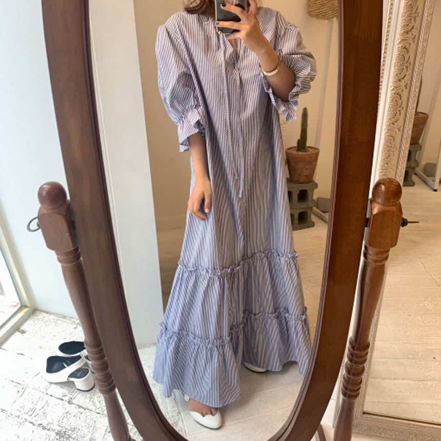 2022春新作 ワンピース ロングワンピース マキシ丈 ストラップ柄 レディース 韓国風 体型カバー