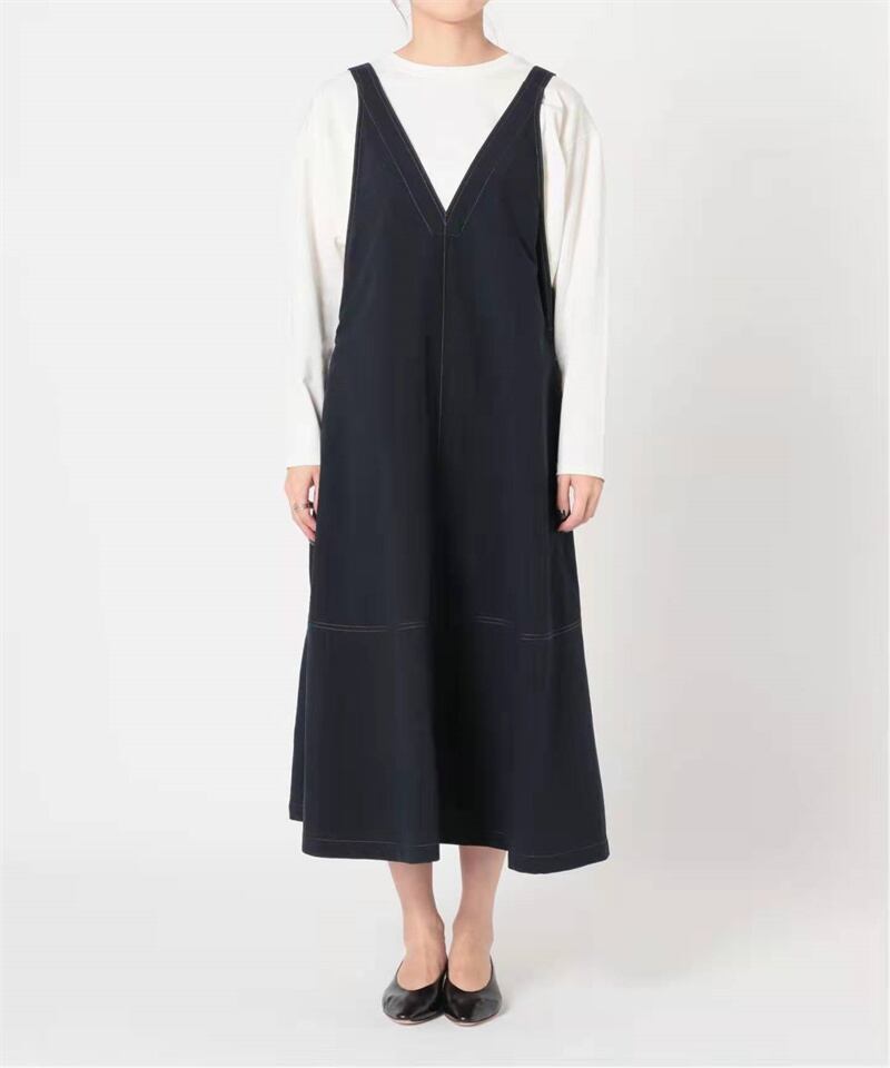 大人カジュアルに着るマキシ丈サロペットスカート。