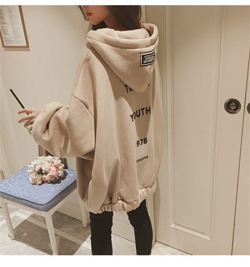 英字ロゴ入り パーカー プルオーバー 帽子付き レディーストップス オーバーサイズ