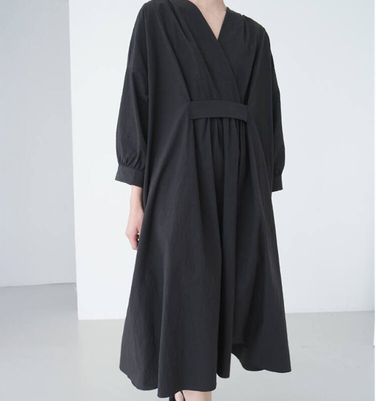 秋新作 ワンピース マキシワンピース ロングワンピース 長袖 Vネック 韓国風 体型カバー