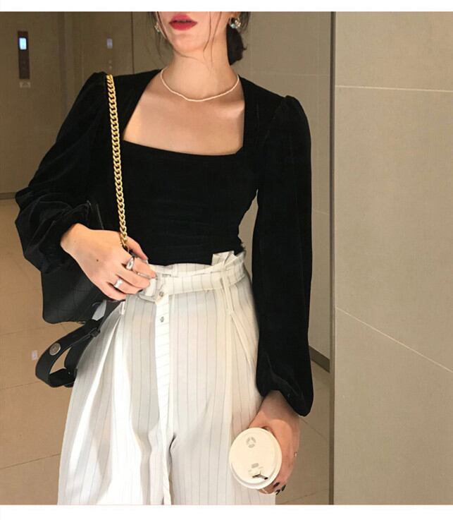 秋新作 ベロアブラウス ベルベット ブラウス トップス パフスリーブ レディース 上品 着痩せ