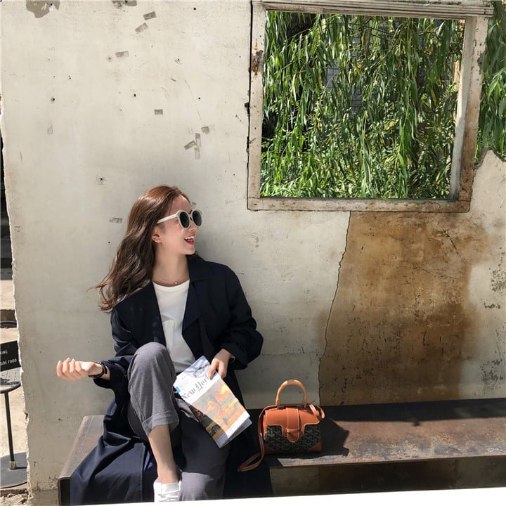 これからのシーズンに大人気のトレンチコートです。 スカートでもパンツでも合わせやすいので一着持っていると大活躍するアイテムです。