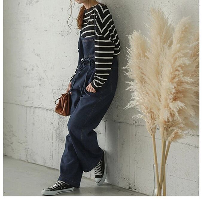 おしゃれで飽きさせない大人可愛いデニムサロペットパンツが登場しました!! シンプルなワイドシルエットデザインで、体のラインを拾わず、体型カバーに◎