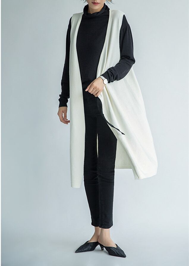 ゆったりシルエットでリラックス感漂うニットロング丈ベスト。 シンプルデザインはコーデに取り入れやすい。 秋冬に大活躍なアイテムです。