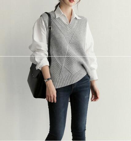 秋冬新作 ニットベスト トップス Vネック重ね着 レディース 体型カバー シンプル