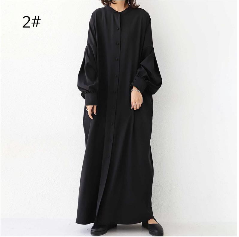 前後両面も着用できるマキシ丈ワンピースです。 シンプルなワイドシルエットデザインで、体のラインを拾わず、体型カバーに◎