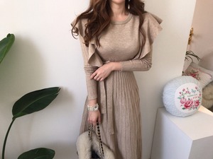 秋冬新作 ニットワンピース ロングワンピース 韓国風 フレア レディース 上品 女性らしい