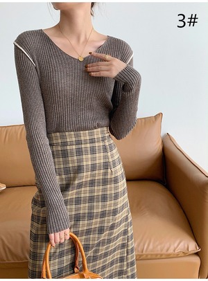 秋新作 ニットインナー トップス セーター Vネック 長袖 伸縮性 レディース 韓国風 柔らかい