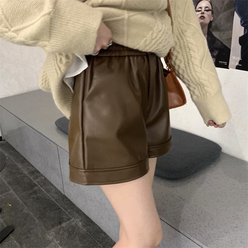 2022新作 PUパンツ ミニ丈パンツ ワイドパンツ レディース シンプル 着痩せ 大人 おしゃれ
