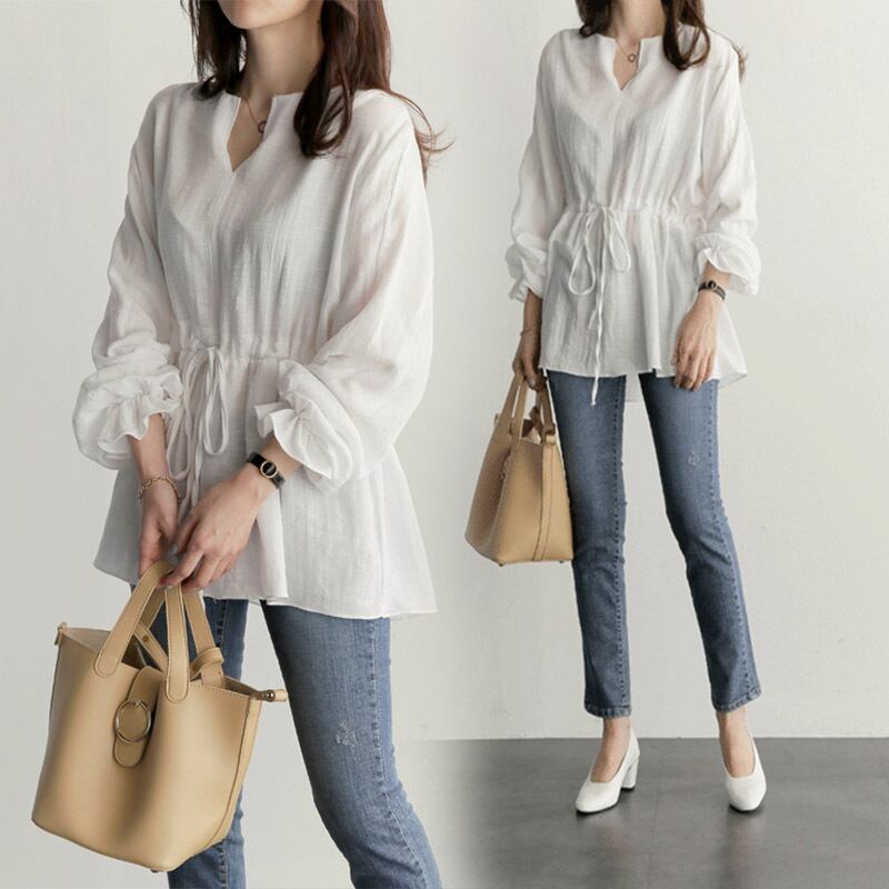 2022春夏新作 人気ブラウス シャツ Vネック リボン付き レディーストップス オシャレ