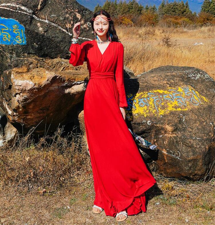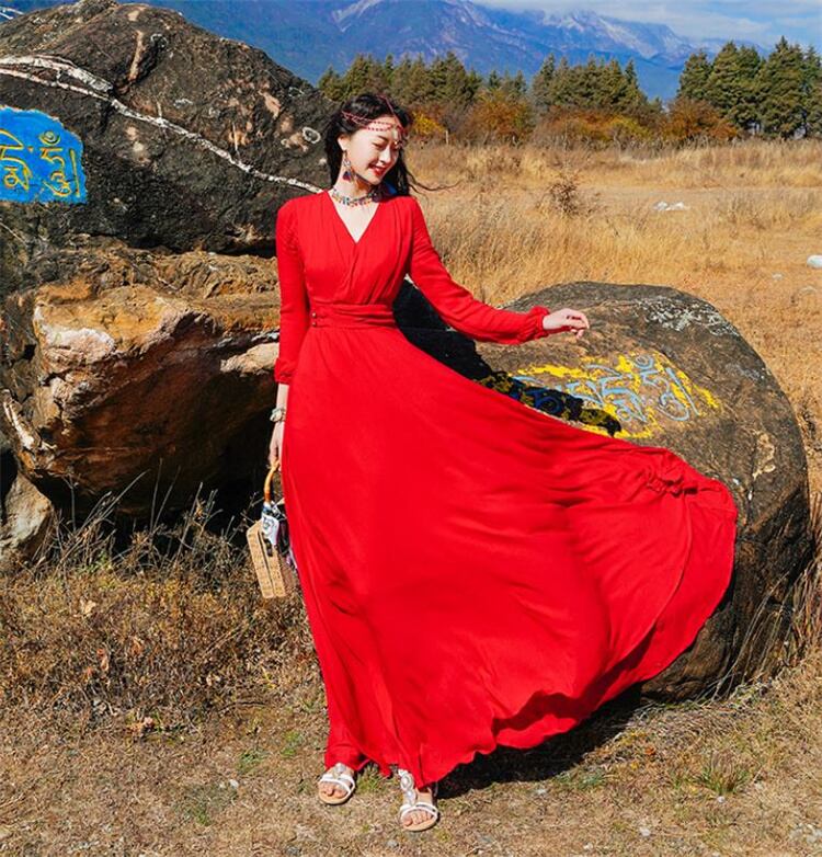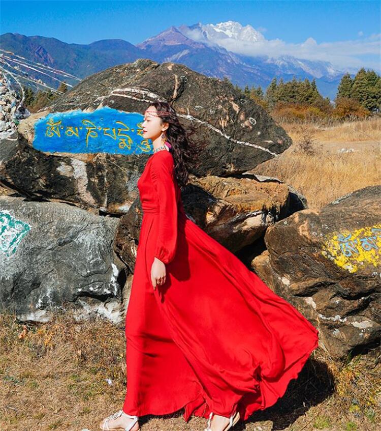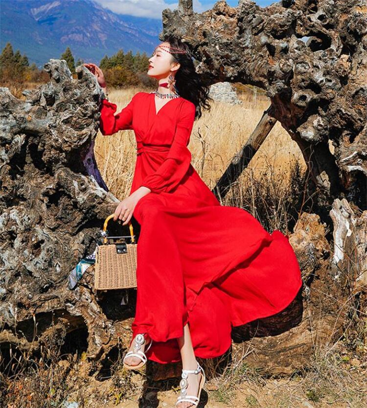 長袖 ワンピース ロングスカート 受け取って腰 秋服 アーティスティック 改良漢服