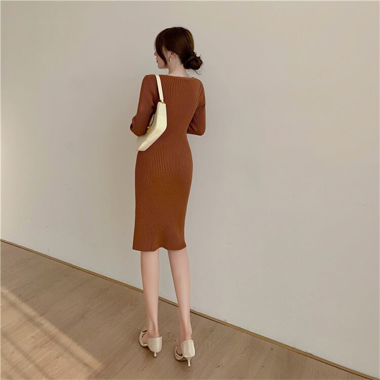 高級感たっぷり Vネック セクシー スリム エレガント ニットワンピース 新品 ロングスカート