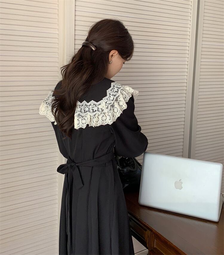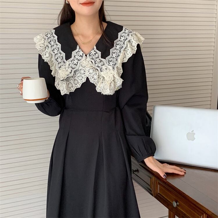 ロングスカート レトロ レース デザインセンス 縫付 ワンピース