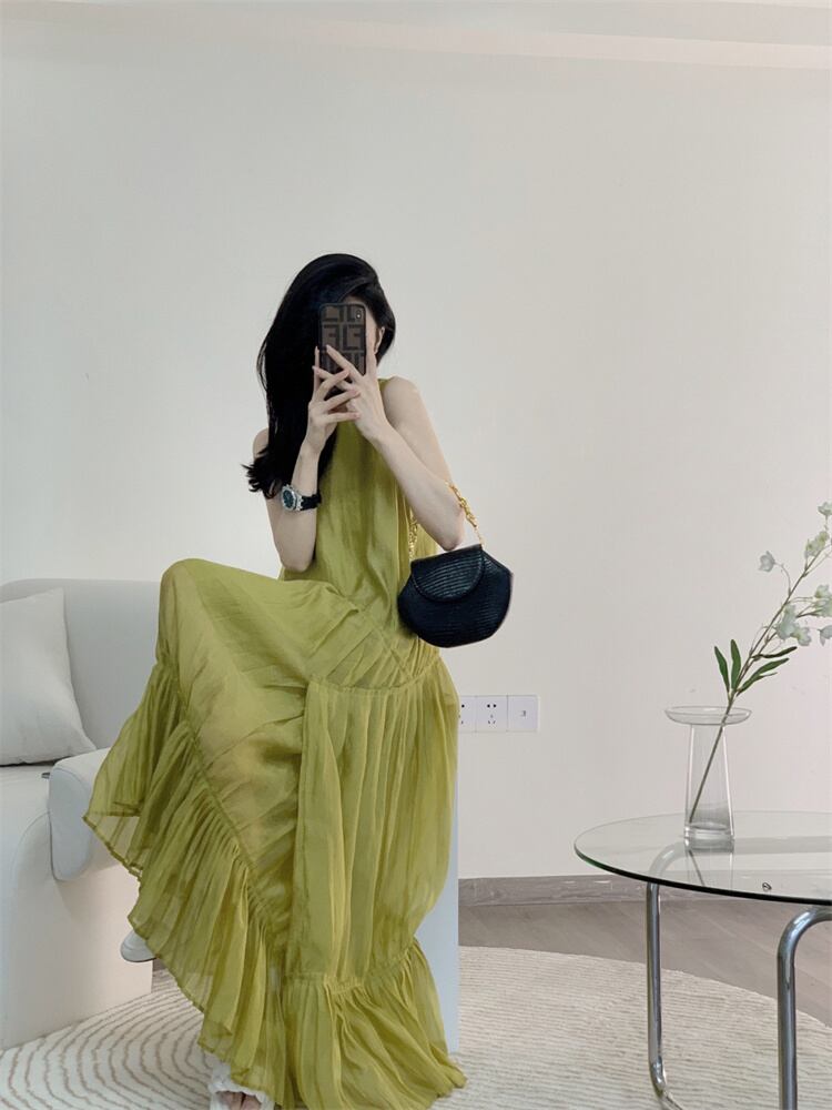 シーサイド お出かけ ロングスカート 袖なし デザインセンス イレギュラー