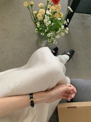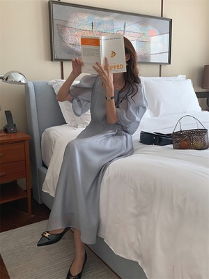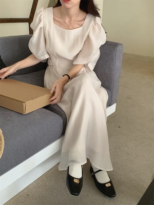 気持ちいい布地 スクエアネック ロングスカート パフスリーブ 受け取って腰 スリム ミニマリスト
