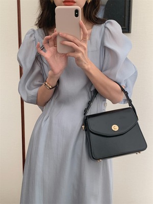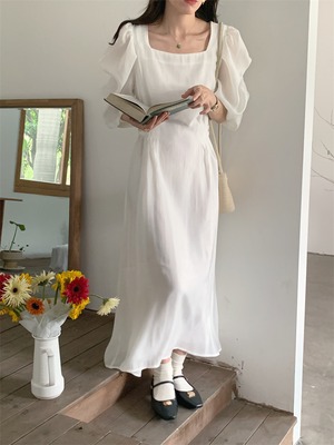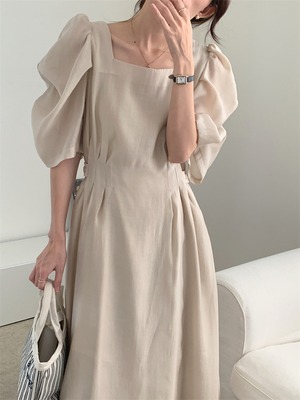 スクエアネック ロングスカート パフスリーブ 受け取って腰 スリム ミニマリスト