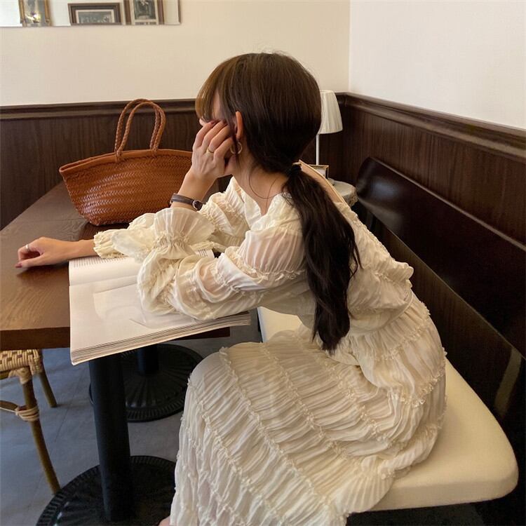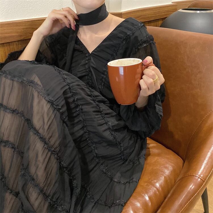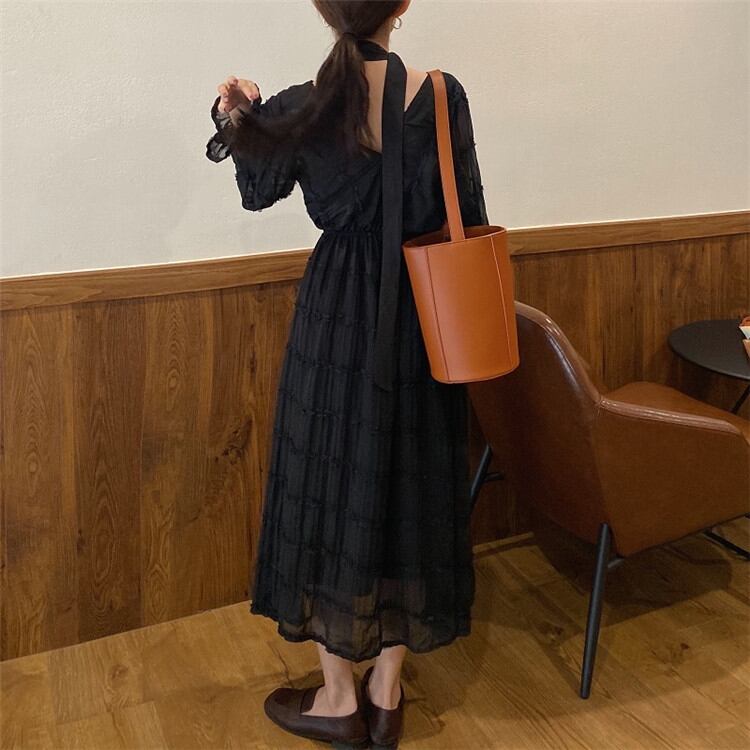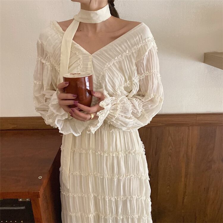 ギャザリング バンディング 中・長セクション お出かけ 上品映え Vネック ワンビース