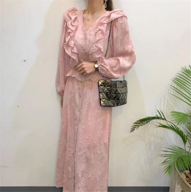 デザインセンス シンプル フリル 長袖 ロングスカート エレガント 快適 タイドファッション