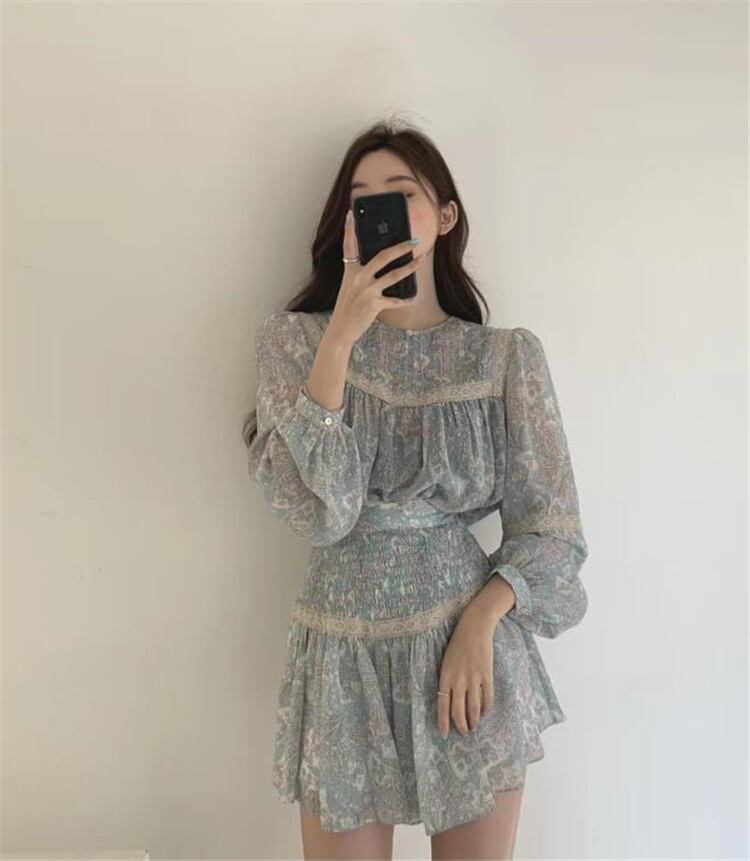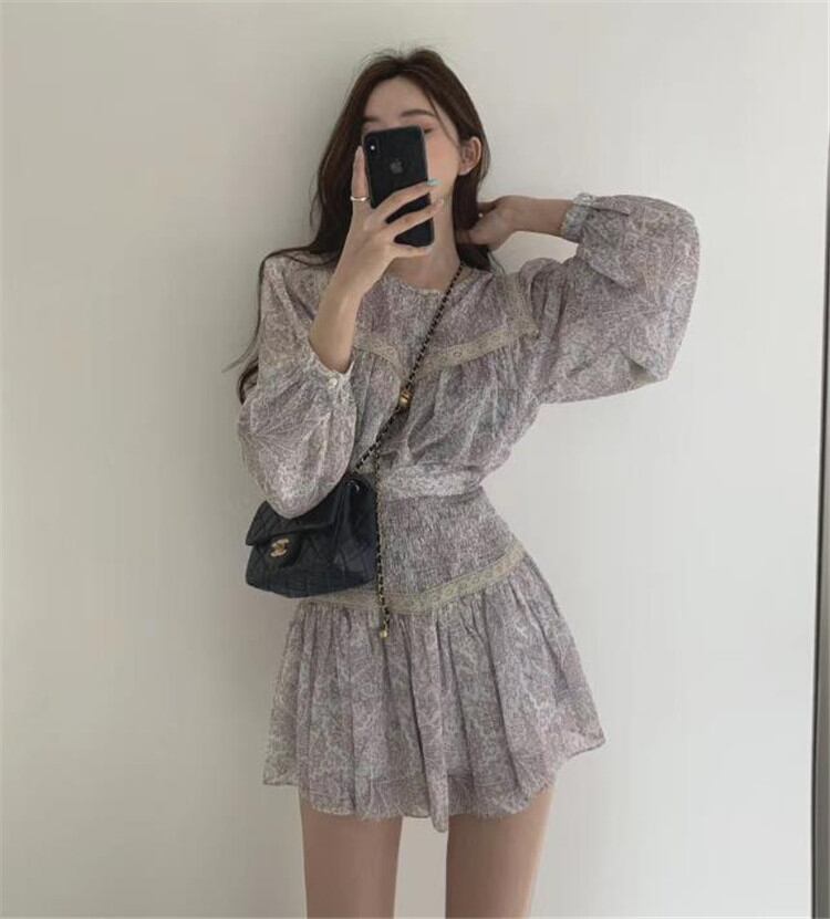 シフォンブラウス セット ハイウエスト Aライン ギャザリング ミニスカート トレンド お出かけ