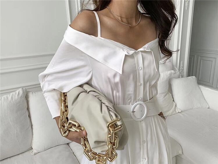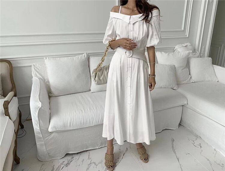 新作 初秋 sweet系 セクシー ロングスカート 単体ボタン オフショルダー キャミ・ベアワンビス