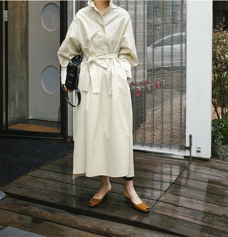 細みせ美人シルエット 大きいサイズ シャツ レース ドールスカート ロングスタイル ワンピース