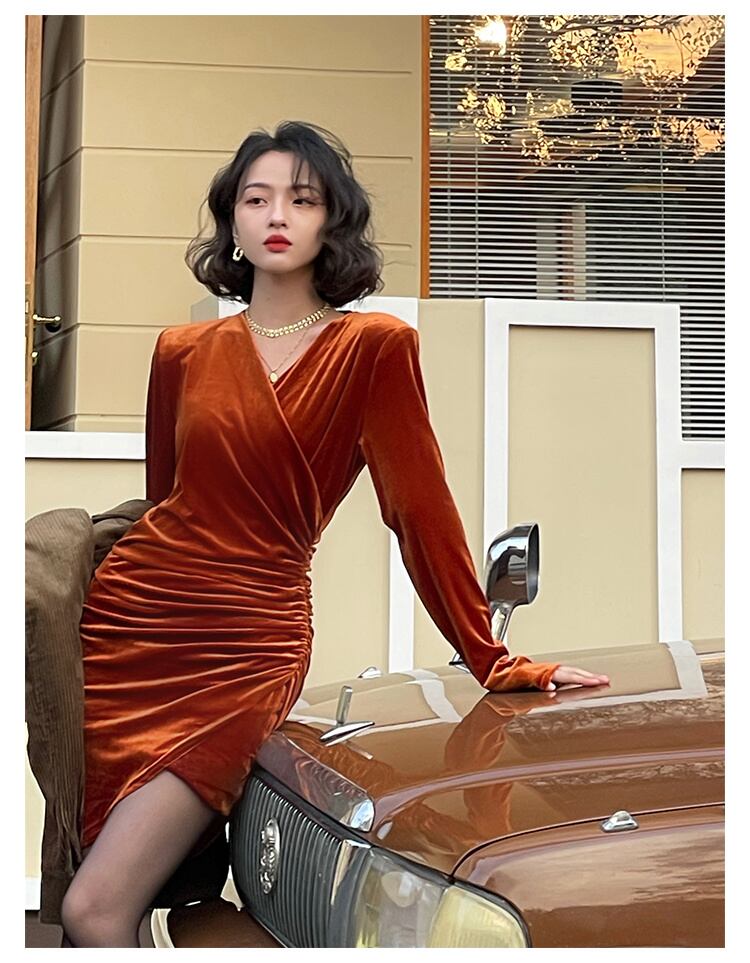 ベルベット タイトスカート ミニスカート セクシー Vネック シャーリング