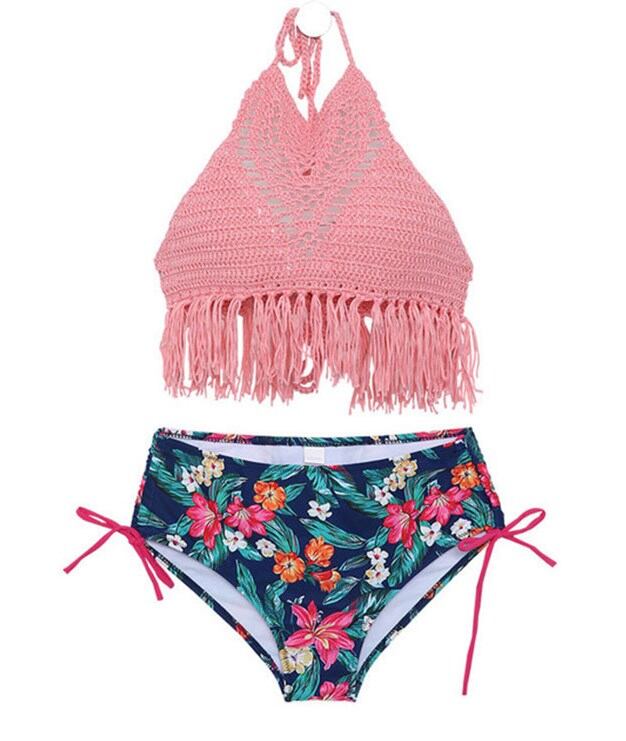 周りと差がつくお洒落なニット水着!個性派ならオリエンタルの雰囲気のタッセル付き。ナチュラルだけど個性的なニット編みデザイン。リゾート地やビーチにもぴったりマッチ。