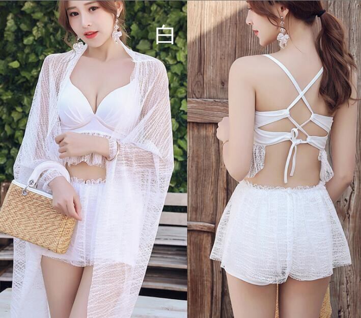 3点セット三角ビキニ 胸寄せ水着 紫外線対策 ワイヤーあり クロス チュール