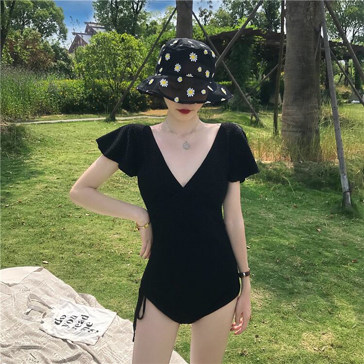 ラップ風Vネックモノキニ ワンピース水着 パッド付き ノンワイヤービキニ 2022新作