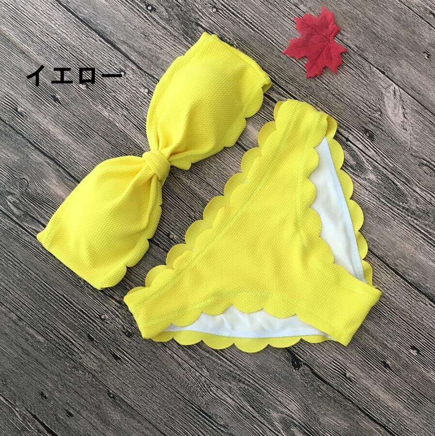 スカラップカットビキニ 可愛い 黒 2点セット水着