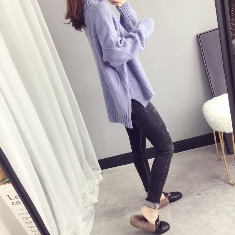 4色選択可能★ゆったり ケーブル編み ハイネック ニットセーター 怠惰な風 INS大人気
