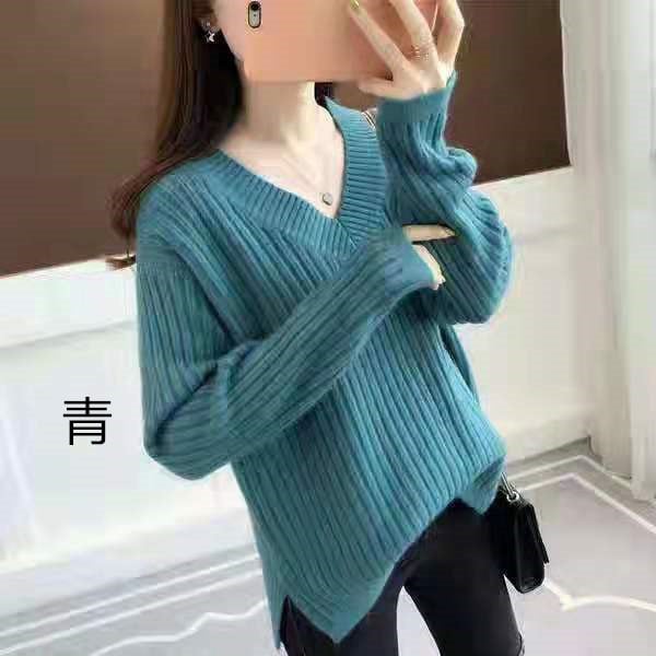 6色選択可★リブ編み Vネックニット 長袖セーター 秋冬ニット