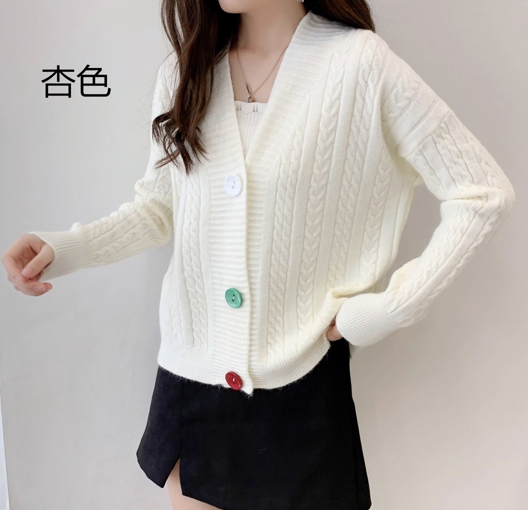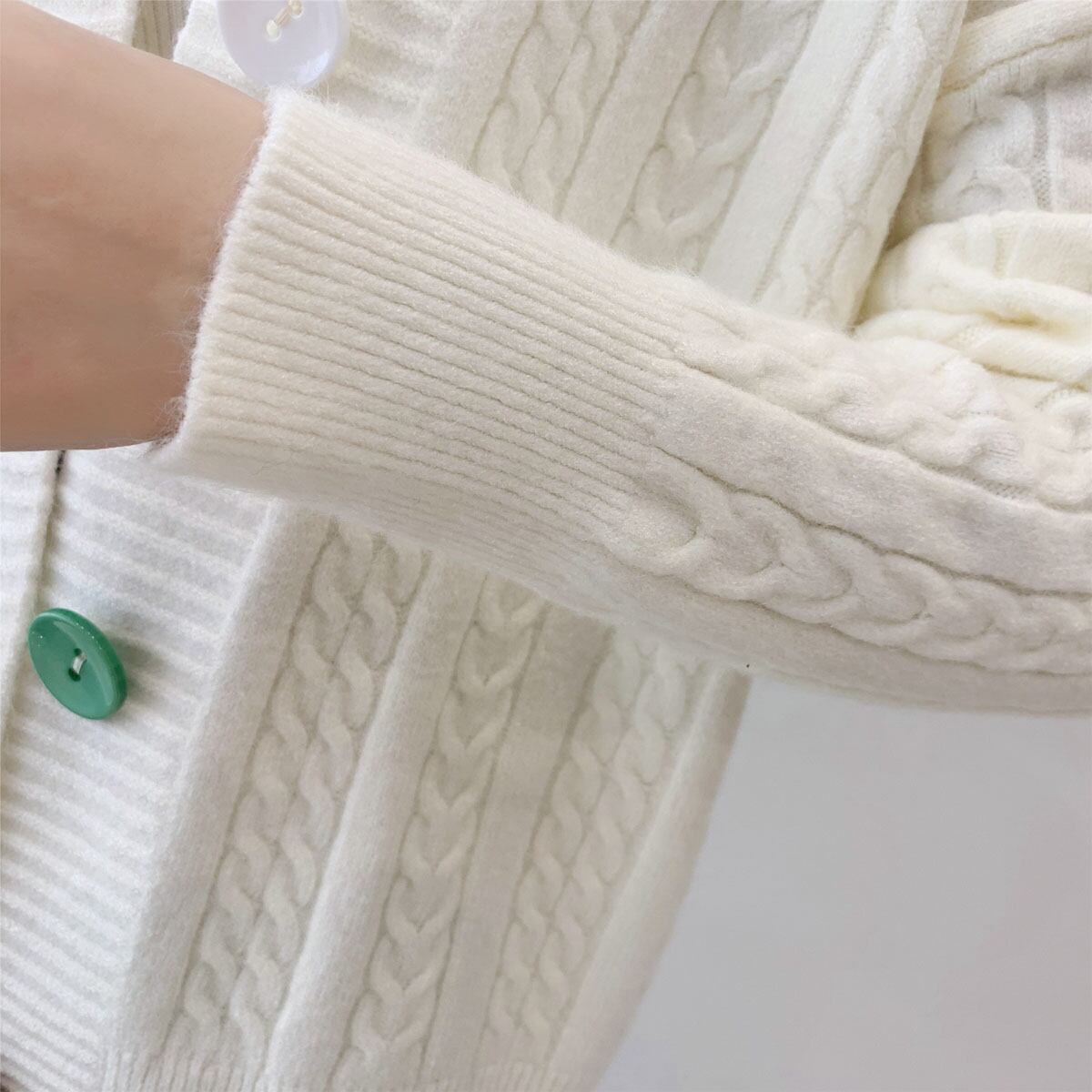 ショート丈ケーブルニットカーディガン ボタン 秋冬新作